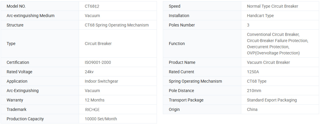CT68-12 वैक्यूम सर्किट ब्रेकर उच्च ब्रेकिंग क्षमता के साथ और बहुत लंबे विद्युत धीरज के साथ विशेष संपर्क सामग्री और अवरोधक को अपनाता है।