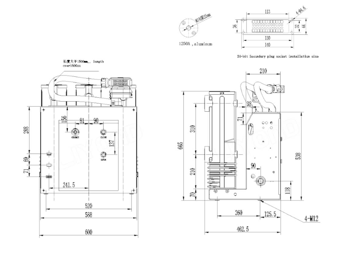 CT68 स्प्रिंग ऑपरेटिंग मैकेनिज्म के साथ 24KV वैक्यूम सर्किट ब्रेकर