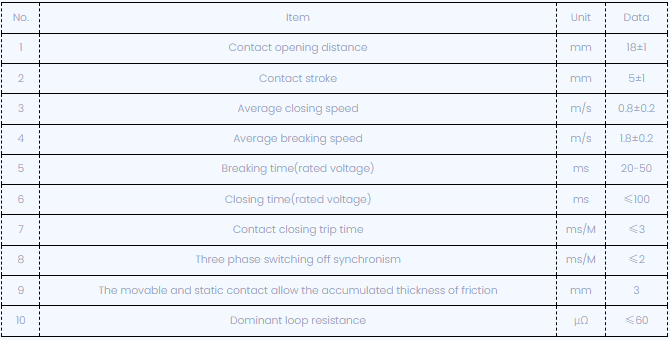 सर्किट ब्रेकर को समायोजित करने के बाद, यांत्रिक विशेषता पैरामीटर नीचे दिखाए गए हैं