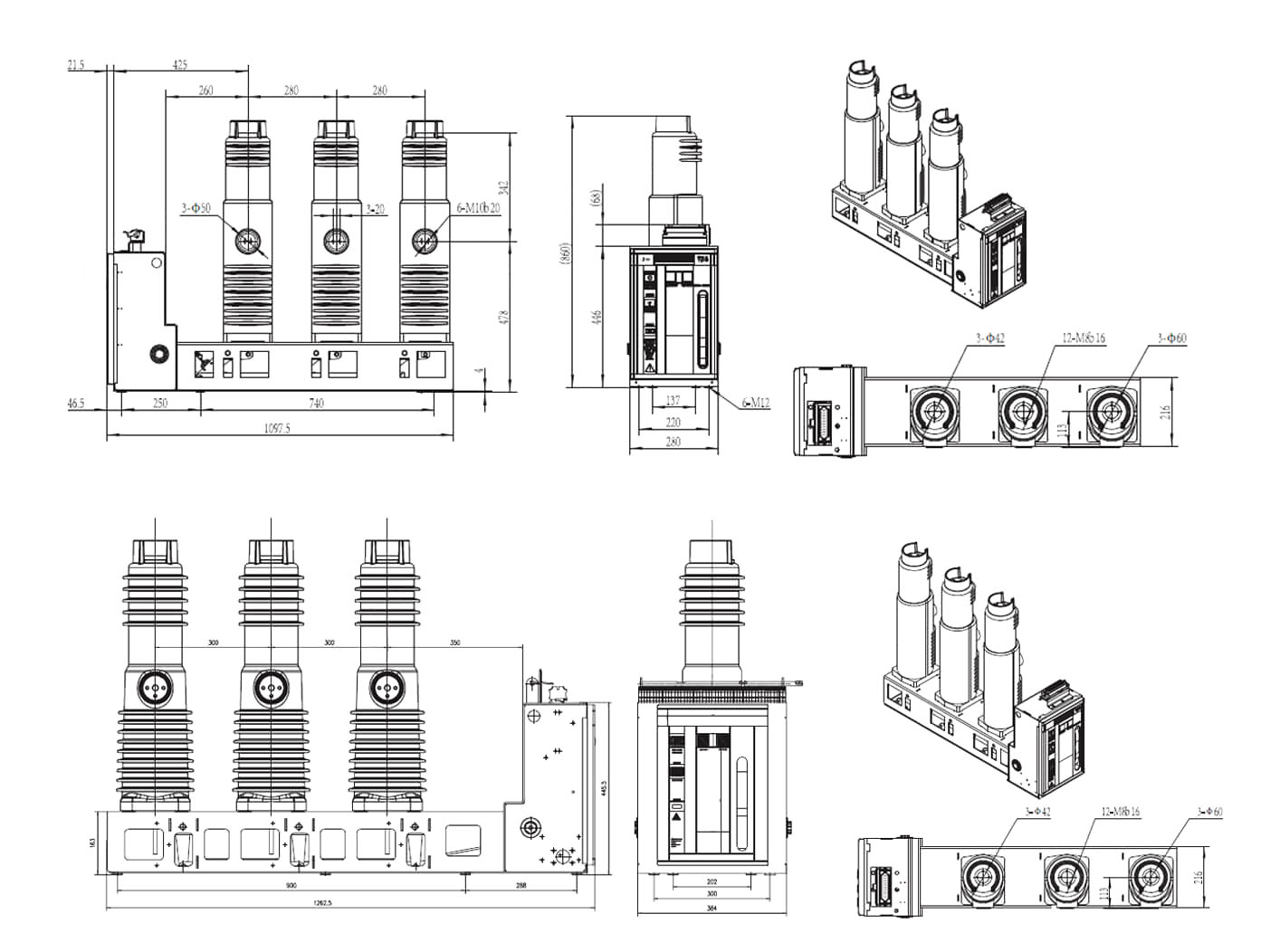 ऊपरी आउटलेट साइड माउंटेड टाइप इनडोर वैक्यूम सर्किट ब्रेकर के साथ 36KV एम्बेडेड डंडे