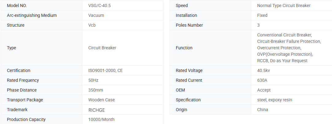 वीएसजी/सी -40.5 सीरीज़ साइड माउंटेड वैक्यूम सर्किट ब्रेकर अद्वितीय डिजाइन अवधारणा के अनुसार तीन चरण 50 हर्ट्ज का एक नया प्रकार है और बाजार की मांग और विकास के साथ संयुक्त है, इनडोर स्विचगियर 40.5kV के रेटेड वोल्टेज, यह औद्योगिक और खनन उद्यमों, बिजली संयंत्र और सबस्टेशन को नियंत्रण और संरक्षण के रूप में प्रदान किया जा सकता है, जो कि आवेग के लिए नियंत्रण और संरक्षण के रूप में है।