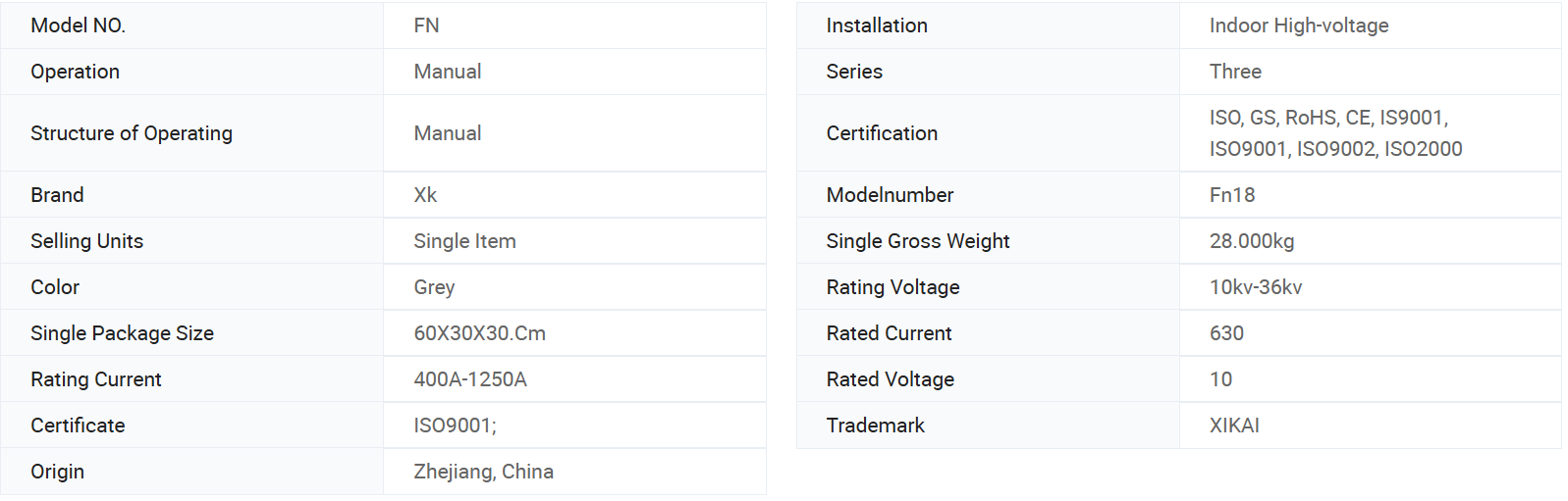 FN18 लोड स्विच और लोड स्विच-फ्यूज संयोजन उच्च-वोल्टेज, उच्च-प्रदर्शन लोड स्विच हैं जो संपीड़ित-एयर आर्क बुझाने और गैस-उत्पादित आर्क बुझाने का संयोजन करते हैं। लोड स्विच और फ्यूज का संयोजन लोड स्विच के फायदों के साथ फ्यूज के फायदों को जोड़ता है, जो लोड स्विच के रेटेड ब्रेकिंग करंट तक किसी भी लोड करंट को स्विच करने के लिए, और फ्यूज और उसके इम्पिंगर के संचालन के माध्यम से संयोजन के रेटेड शॉर्ट-सर्किट ब्रेकिंग करंट तक किसी भी ओवरक्रेन को स्विच करने के लिए।