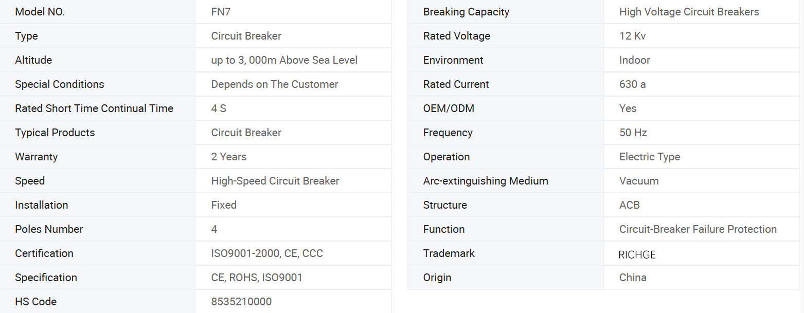 FN7 श्रृंखला लोड ब्रेक स्विच, आम तौर पर आपूर्ति को चालू और बंद करने के लिए स्प्रिंग तंत्र के साथ आता है, हालांकि, वैक्यूम सर्किट ब्रेकर के साथ विकल्प भी उपलब्ध है। बेशक, वैक्यूम सर्किट ब्रेकर वाला विकल्प महंगा है। इन दोनों के बीच चुनाव पूरी तरह से ग्राहक पर निर्भर करता है। वैक्यूम सर्किट ब्रेकर के साथ लोड ब्रेक स्विच अधिक विश्वसनीय विकल्प है। फ्यूज संयोजन एसी उच्च वोल्टेज के साथ FN7 36kv लोड ब्रेक स्विच।