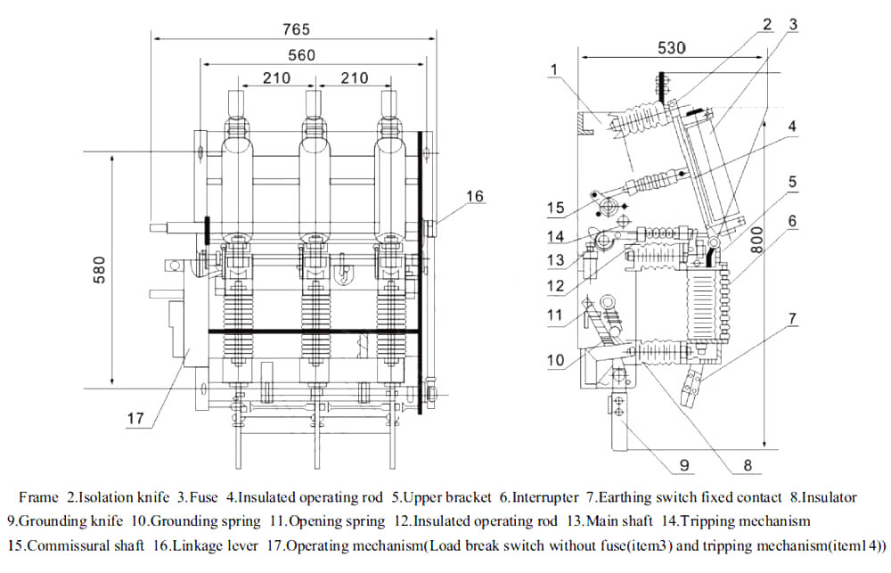 FZN21-12 श्रृंखला उच्च-वोल्टेज वैक्यूम लोड स्विच मुख्य रूप से Framer से बना है, डिस्कनेक्टिंग स्विच (Combiner का वर्तमान-सीमित फ्यूज डिस्कनेक्टिंग स्विच में है), वैक्यूम स्विचिंग ट्यूब, ग्राउंडिंग स्विच, स्प्रिंग ऑपरेटिंग तंत्र और इसी तरह। इस उत्पाद में कॉम्पैक्ट संरचना, छोटी मात्रा, लंबी जीवन, मजबूत समापन और ब्रेकिंग क्षमता और आसान संचालन और रखरखाव है। वैक्यूम स्विच एक स्प्रिंग-संचालित तंत्र से सुसज्जित है, जो एक इलेक्ट्रिक मोटर (एक और मैनुअल) स्प्रिंग एनर्जी स्टोरेज को अपनाता है, और दो प्रकार के समापन तरीके हैं: इलेक्ट्रोमैग्नेट क्लोजिंग और मैनुअल स्प्लिटिंग और क्लोजिंग। डिस्कनेक्टिंग स्विच, वैक्यूम स्विच और अर्थिंग स्विच को गलत तरीके से रोकने के लिए एक दूसरे (यांत्रिक इंटरलॉकिंग) के साथ इंटरलॉक किया जाता है।