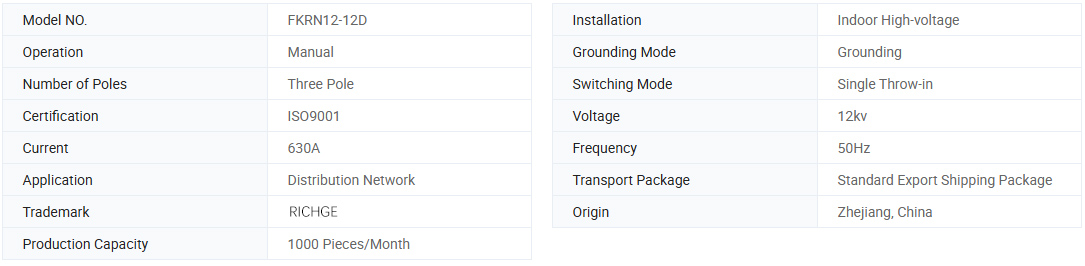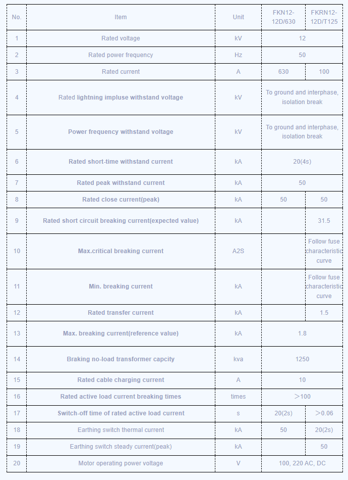 FKN12-12D/630-20 श्रृंखला एयर-ब्लास्ट लोड ब्रेक स्विच (इसके बाद के बाद FKRN12- 12D के रूप में संदर्भित) और FKRN12-12D श्रृंखला एयर-ब्लास्ट लोड ब्रेक स्विच और फ्यूज संयोजन उपकरण नई श्रृंखला स्विचगियर हैं जो रेटेड 12KV के तीन चरण इलेक्ट्रिक वितरण प्रणाली पर लागू होते हैं, जो ट्रांसफॉर्मर्स के लिए हेडर और नियंत्रण के रूप में कार्य करते हैं।