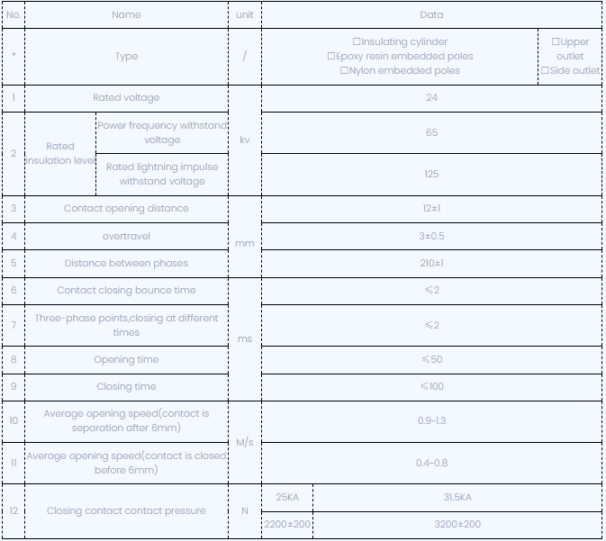 VBI-24 साइड माउंटेड टाइप वैक्यूम सर्किट बीकर के ऑपरेशन मैकेनिज्म का उपयोग वसंत के लिए स्प्रिंग थो स्टोरेज एनर्जी में किया जाता है, जिसे दो तरीकों से संचालित किया जा सकता है, मैनुअल या इलेक्ट्रिकल।<10kv Indoor High Voltage Vacuum Circuit Breaker General Technical Specifications>, IEC56 मानक के प्रासंगिक प्रावधान।