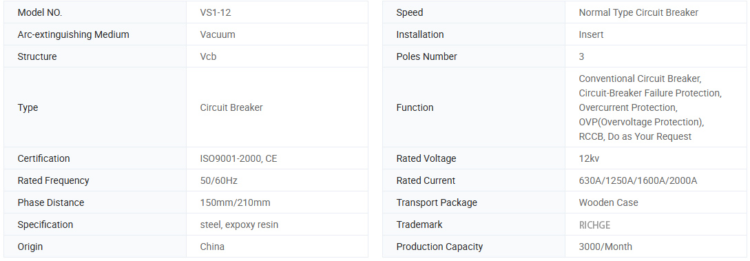 VS1 (ZN63A) -12series आम अछूता सिलेंडर के साथ इनडोर वैक्यूम ब्रेकर की तीन-वाक्य है। इसका उपयोग उद्योग और खनन उद्यम, बिजली संयंत्रों और सबस्टेशन के क्षेत्रों में विद्युत उपकरणों को नियंत्रित करने के लिए किया जाता है। यह प्रकार वैक्यूम सर्किट ब्रेकर राष्ट्रीय मानकों के अनुरूप होता है और IEC मानक की वजीफा, क्षमता M2-E2-C2 के ग्रेड तक पहुंचती है।
