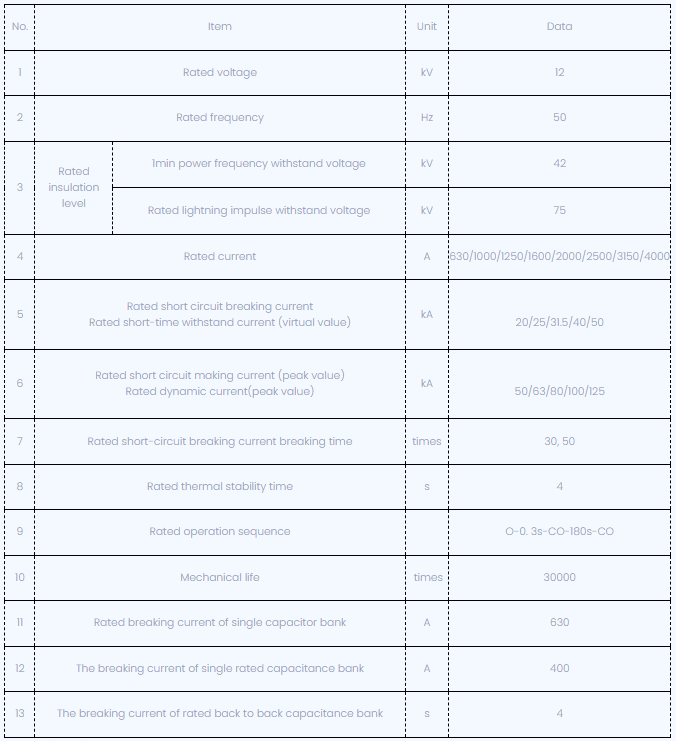 वीएसजी टाइप इनडोर हाई-वोल्टेज वैक्यूम सर्किट ब्रेकर तीन-चरण एसी 50 हर्ट्ज और 7.2kV-40.5kV के रेटेड वोल्टेज के साथ पावर सिस्टम में विभिन्न नाटकों और लगातार संचालन के विभिन्न भारों को स्विच करने के लिए उपयुक्त है। इसका उपयोग उद्योगों, खनन, उद्यमों और बिजली संयंत्रों में किया जा सकता है। और सबस्टेशन में विद्युत उपकरणों के संरक्षण और नियंत्रण के लिए। यह KYN28A और अन्य मध्य-माउंटेड हैंडकार्ट स्विच अलमारियाँ से लैस हो सकता है, और इसे XGN फिक्स्ड स्विच कैबिनेट से भी लैस किया जा सकता है। वीएसजी इनडोर हाई-वोल्टेज वैक्यूम सर्किट ब्रेकर राष्ट्रीय मानकों GB1984 "एसी हाई-वोल्टेज सर्किट ब्रेकर", जेबी/T3855 "3.6 ~ 40.5kv इनडोर एसी हाई-वोल्टेज वैक्यूम सर्किट ब्रेकर" और IEC60056 "हाई-वोल्टेज एसी सर्किट ब्रेकर" स्टैंडर्ड्स के साथ अनुपालन करता है।