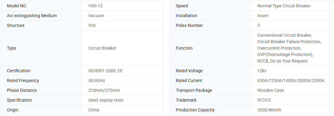 वीएसजी -12 टाइप इनडोर उच्च वोल्टेज वैक्यूम सर्किट ब्रेकर ने स्प्रिंग को स्टोरेज एनर्जी में इस्तेमाल किया। ऑपरेटिंग तंत्र को मैनुअल और इलेक्ट्रोमोटिव ऑपरेशन द्वारा दो तरीकों से संचालित किया जा सकता है, विशेषताएं GB1984-2003 उच्च वोल्टेज एसी सर्किट ब्रेकर, JB3855-1996 3.6-4.5KV INDOOR AC हाई वोल्टज सर्किट ब्रेकर और IEC स्टैंडर्ड 62271-100: 200162271-100