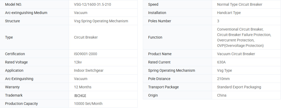 वीएसजी -12 टाइप इनडोर उच्च वोल्टेज वैक्यूम सर्किट ब्रेकर ने स्प्रिंग को स्टोरेज एनर्जी में इस्तेमाल किया। ऑपरेटिंग तंत्र को मैनुअल और इलेक्ट्रोमोटिव ऑपरेशन द्वारा दो तरीकों से संचालित किया जा सकता है, विशेषताएं GB1984-2003 उच्च वोल्टेज एसी सर्किट ब्रेकर, JB3855-1996 3.6-4.5KV INDOOR AC हाई वोल्टज सर्किट ब्रेकर और IEC स्टैंडर्ड 62271-100: 200162271-100