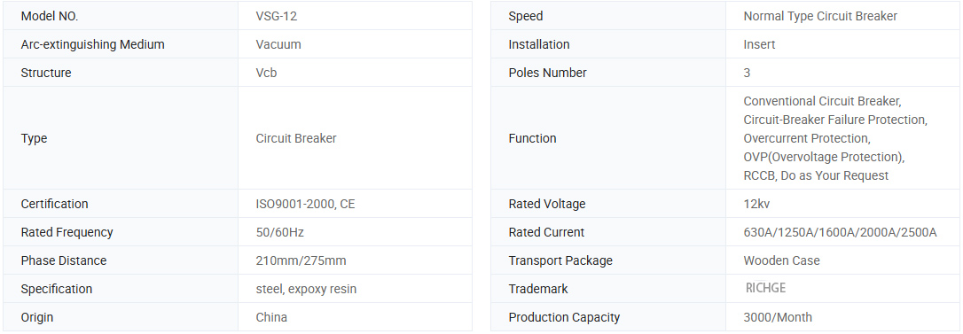 वीएसजी टाइप इनडोर हाई-वोल्टेज वैक्यूम सर्किट ब्रेकर तीन-चरण एसी 50 हर्ट्ज और 7.2kV-40.5kV के रेटेड वोल्टेज के साथ पावर सिस्टम में विभिन्न नाटकों और लगातार संचालन के विभिन्न भारों को स्विच करने के लिए उपयुक्त है। इसका उपयोग उद्योगों, खनन, उद्यमों और बिजली संयंत्रों में किया जा सकता है। और सबस्टेशन में विद्युत उपकरणों के संरक्षण और नियंत्रण के लिए। यह KYN28A और अन्य मध्य-माउंटेड हैंडकार्ट स्विच अलमारियाँ से लैस हो सकता है, और इसे XGN फिक्स्ड स्विच कैबिनेट से भी लैस किया जा सकता है। वीएसजी इनडोर हाई-वोल्टेज वैक्यूम सर्किट ब्रेकर राष्ट्रीय मानकों GB1984 "एसी हाई-वोल्टेज सर्किट ब्रेकर", जेबी/T3855 "3.6 ~ 40.5kv इनडोर एसी हाई-वोल्टेज वैक्यूम सर्किट ब्रेकर" और IEC60056 "हाई-वोल्टेज एसी सर्किट ब्रेकर" स्टैंडर्ड्स के साथ अनुपालन करता है।