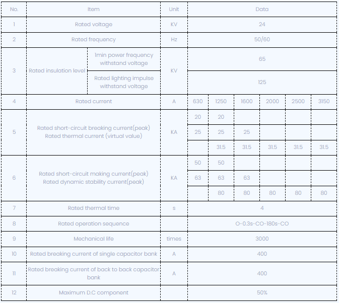 VSG-24 एम्बेडेड पोल प्रकार VCB ब्रेकर इनडोर सर्किट ब्रेकर 24KV