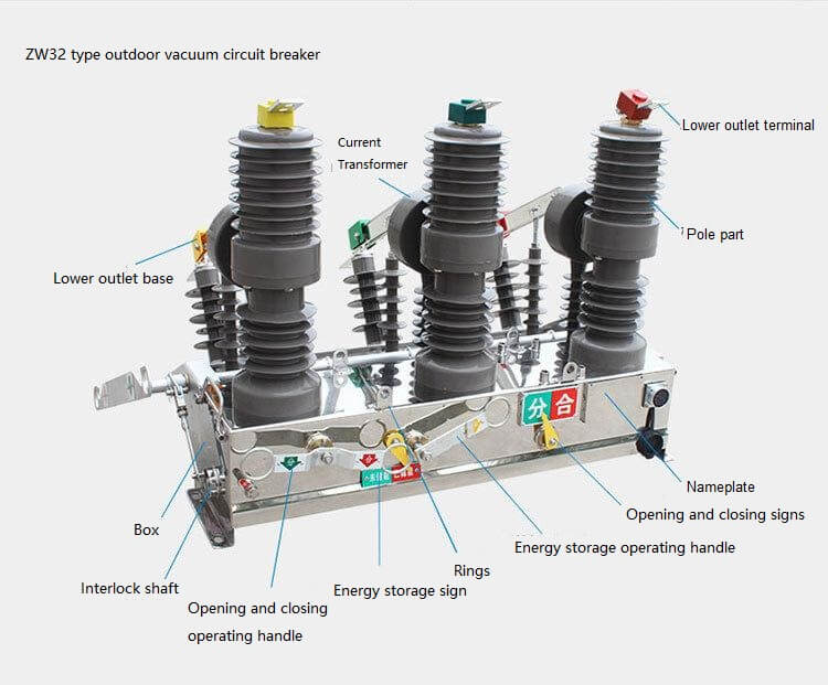 ZW32-12 आउटडोर एमवी वैक्यूम सर्किट ब्रेकर रेटेड वोल्टेज 12KV, तीन चरण एसी 50 हर्ट्ज के साथ आउटडोर वितरण उपकरण है। इसका उपयोग सबस्टेशन और औद्योगिक और खनन उद्यम वितरण प्रणाली में उपयोग और उपयोग को नियंत्रित करने के लिए किया जाता है। इसका उपयोग ग्रामीण पावर ग्रिड स्थानों में भी किया जाता है, जिसमें लोड करंट को तोड़ने और बंद करने के लिए लगातार ऑपरेशन और लोड करंट और शॉर्ट सर्किट करंट ऑफ पावर सिस्टम को बंद करने के लिए उपयोग किया जाता है।