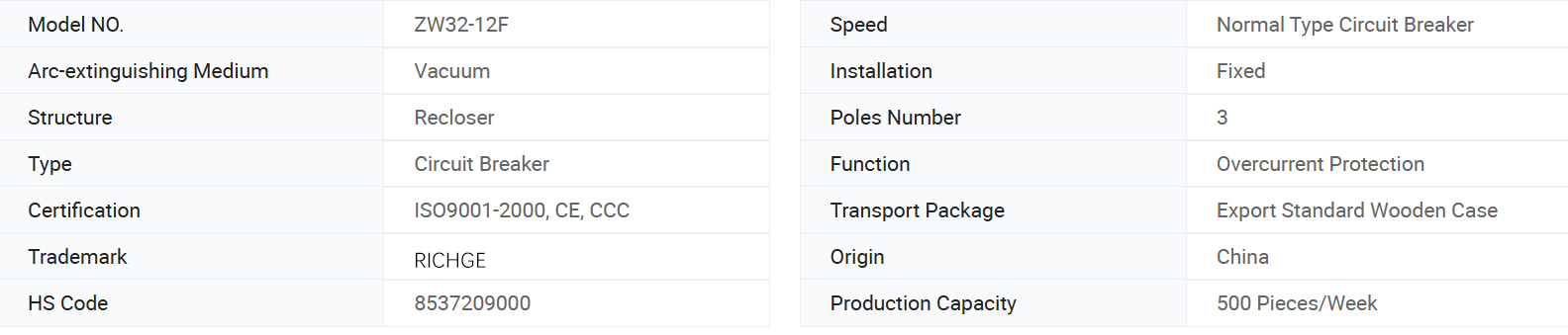 ZW32-12 आउटडोर वैक्यूम सर्किट ब्रेकर (इसके बाद सर्किट ब्रेकर के रूप में संदर्भित) एक आउटडोर बिजली वितरण उपकरण है जिसमें 12KV और तीन-चरण AC 50Hz के रेटेड वोल्टेज के साथ है। इसका उपयोग मुख्य रूप से पावर सिस्टम में लोड करंट, ओवरलोड करंट और शॉर्ट सर्किट करंट को तोड़ने और बंद करने के लिए किया जाता है। यह सबस्टेशन और औद्योगिक और खनन उद्यम सबस्टेशन सिस्टम में सुरक्षा और नियंत्रण के लिए उपयुक्त है, और ऐसे स्थान जहां ग्रामीण पावर ग्रिड अक्सर काम करते हैं।
